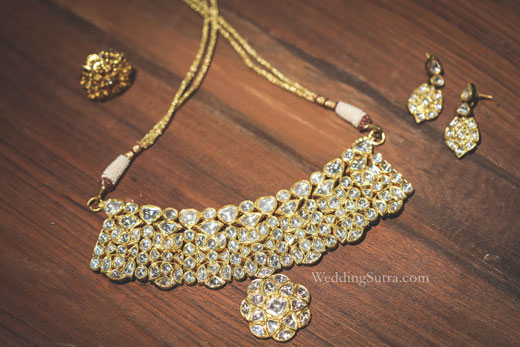 Brilliance of Azva Diamond Polki jewellery on bride to be, Aditi Sanganeria