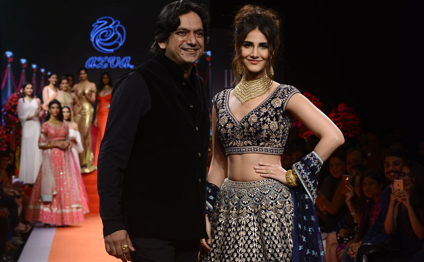 Azva show was all glamour as Vaani Kapoor, in a luxurious royal blue lehenga was styled with the stunning Azva Polki Diamond Showstopper as she took to sizzling the ramp.